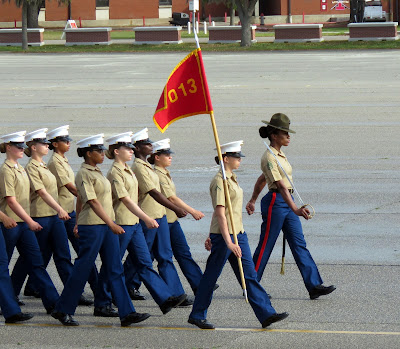 We have lived here for 12 years and have been volunteering at Parris Island for over 10 years. This was our first time attending a graduation. We went with a group from the TOS Men's Club on a drizzly, grey morning. We left the house at 7:15 in order to arrive and get seated for the 9:00 am ceremonies.